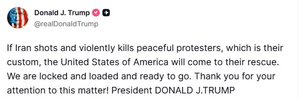«Если Иран будет стрелять и жестоко убивать мирных протестующих, как это обычно бывает, Соединенные Штаты Америки придут им на помощь. Мы готовы к действиям», – заявил американский президент.